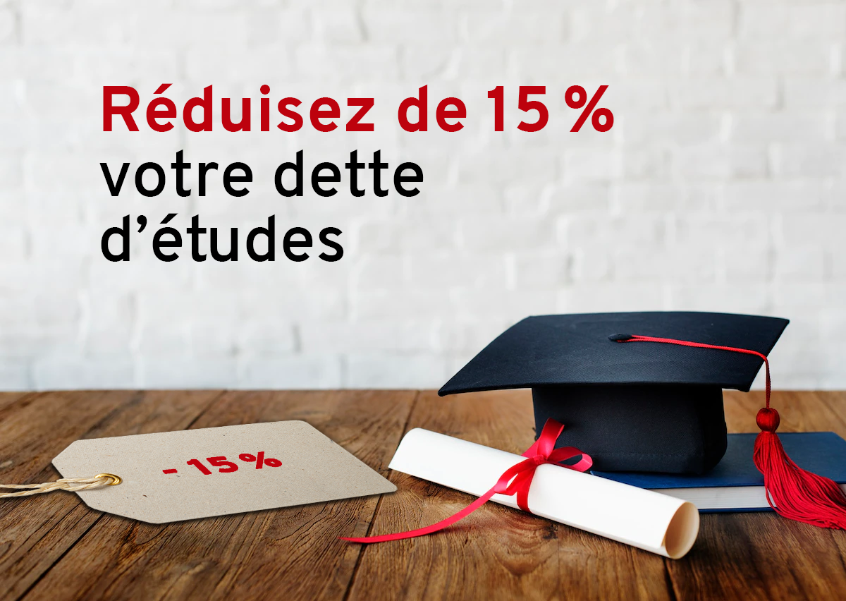 L’Aide financière aux études offre le Programme de remise de dette. Celui-ci vous permet de réduire votre dette de 15%, si vous avez terminé votre baccalauréat dans les délais prescrits et que vous avez reçu des prêts ET des bourses pour chaque année d’études.